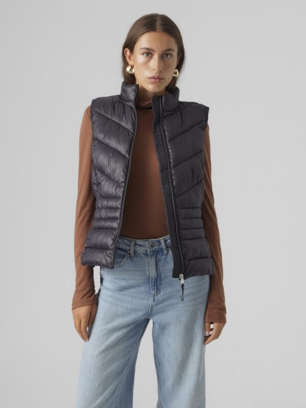 Αμάνικο μπουφάν με όρθιο λαιμό.Κλείσιμο μπροστά με φερμουάρ.Πλαϊνές στέπες.Εφαρμοστή γραμμή.