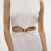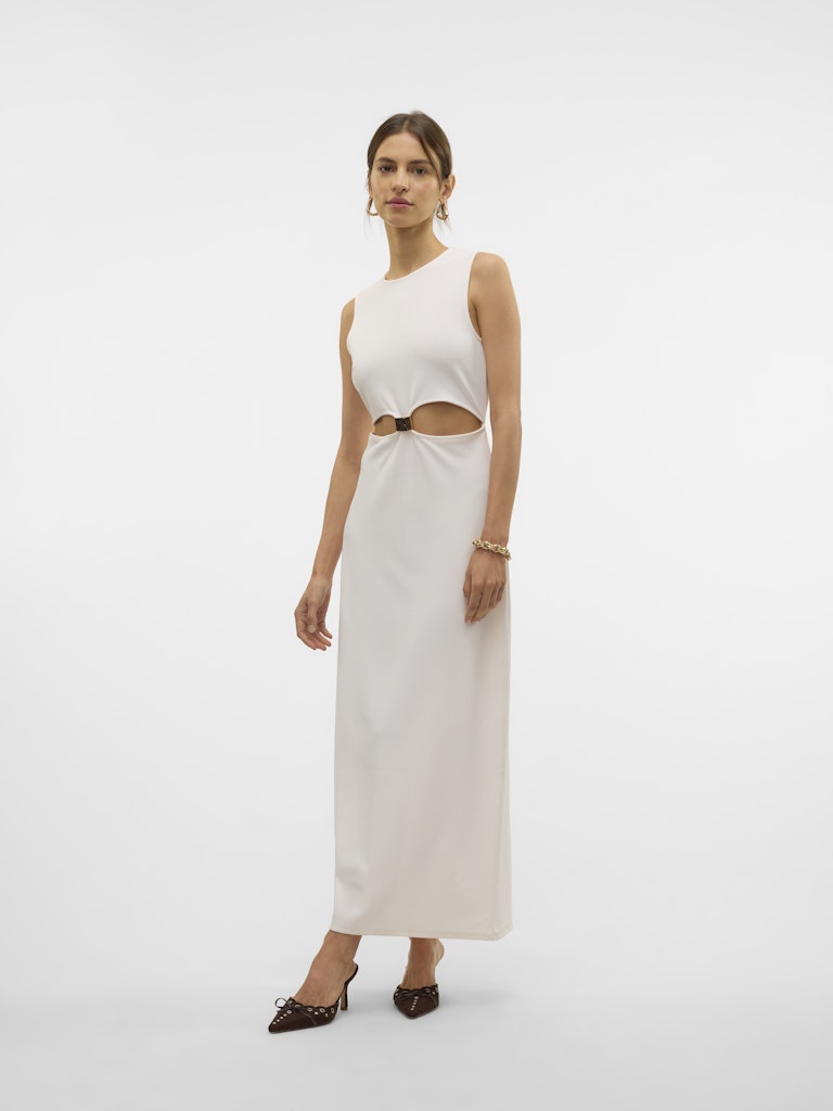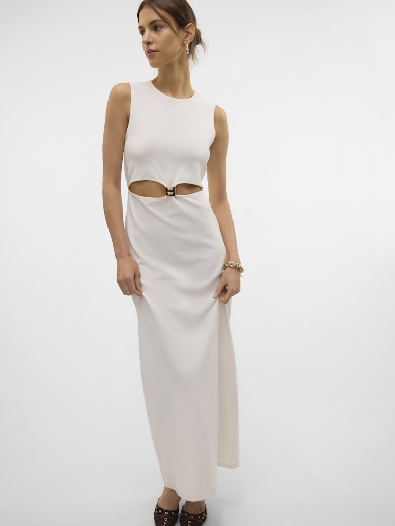 Maxi φόρεμα με στρογγυλή λαιμόκοψη.Αμάνικο.Σχέδιο cut out μπροστά.Μήκος αστραγάλου.Μαλακό και ελαστικό ύφασμα.Κανονική εφαρμογή.