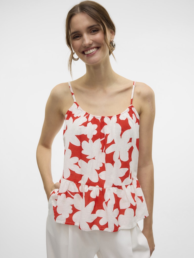 Αμάνικο top με στρογγυλή λαιμόκοψη και ρυθμιζόμενες τιράντες.Βολάν στο τελείωμα.Ανάλαφρο βαμβακερό ύφασμα.Κανονική εφαρμογή.