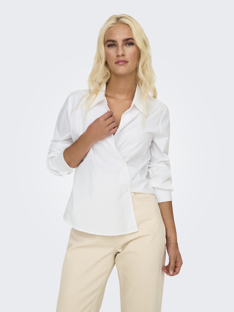 Κρουαζέ πουκάμισο με γιακά και λαιμόκοψη σε σχήμα V.Μακρύ μανίκι με μανσέτα.Ελαστικό ύφασμα.Δέσιμο εσωτερικά με κορδόνι.Κανονική εφαρμογή.
