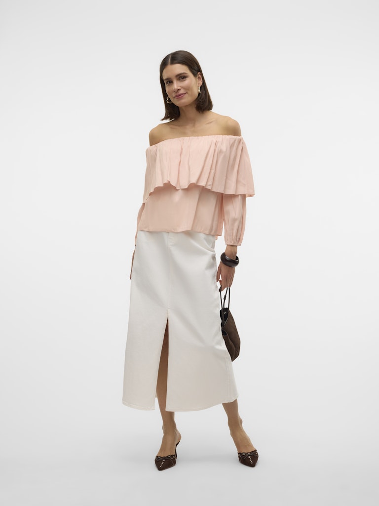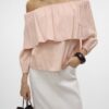 Off shoulder top με βολάν.Μανίκι 7/8.Ανάλαφρο ύφασμα.Κανονική εφαρμογή.