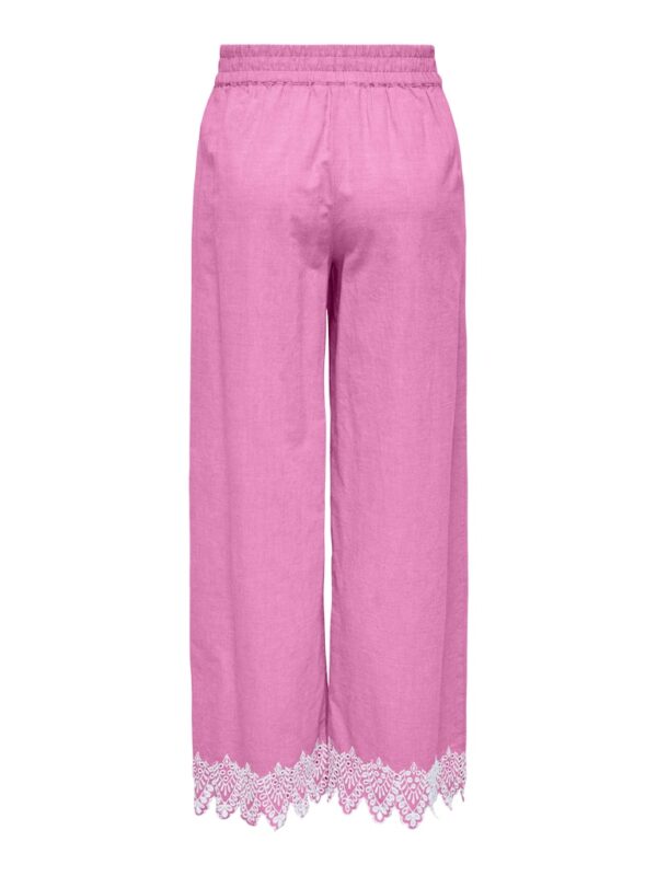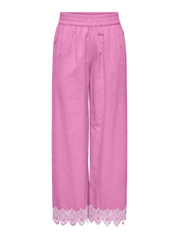 Pull-up παντελόνα με λάστιχο στην μέση.Κιπούρ σχέδιο στο τελείωμα.Ανάλαφρο βαμβακερό ύφασμα.Κανονική εφαρμογή.