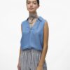 Αμάνικο top με γιακά και V λαιμόκοψη.Κανονικό μήκος.Ανάλαφρο tencel  ύφασμα.Κανονική εφαρμογή.
