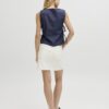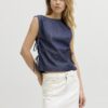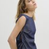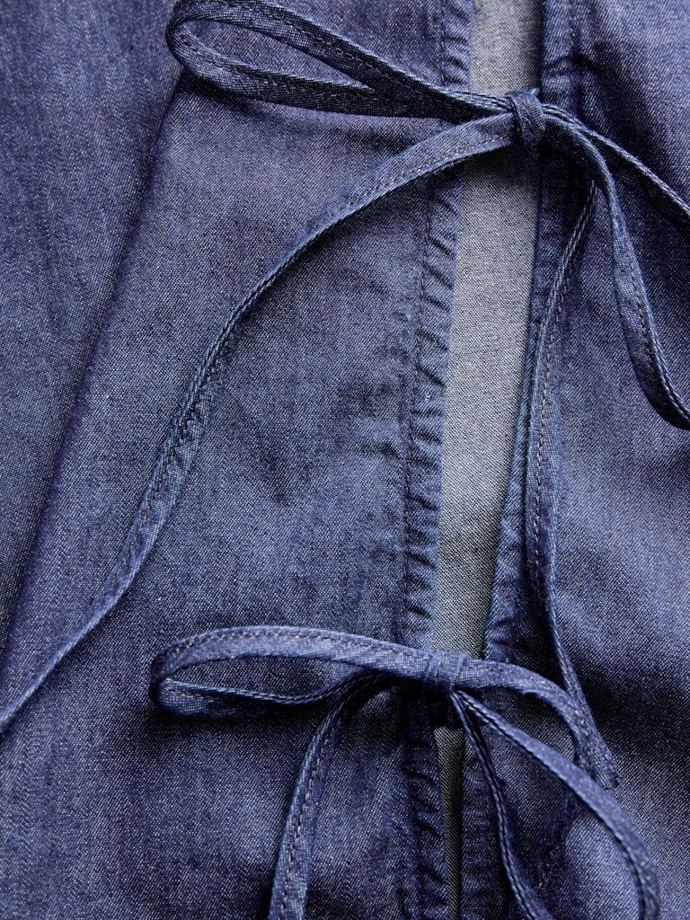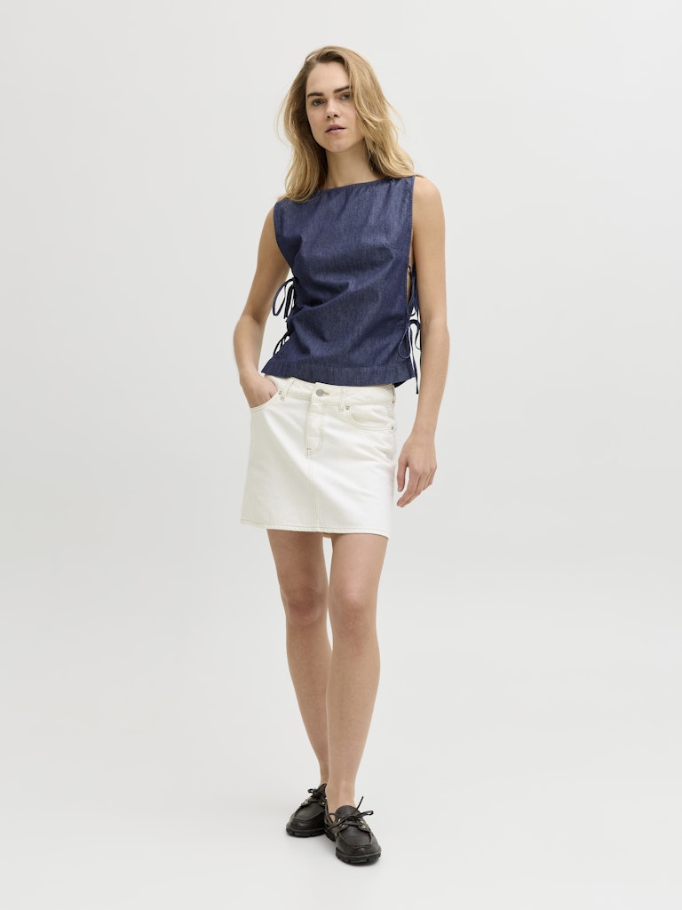 Denim top με στρογγυλή λαιμόκοψη.Αμάνικο.Άνοιχτό στο πλάι με δέσιμο.Ανάλαφρο βαμβακερό denim ύφασμα.Κανονική εφαρμογή.