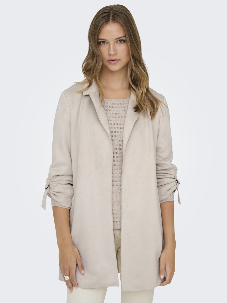 Μακρύ faux suede jacket με γιακά.Μακρύ μανίκι με δέσιμο.Χωρίς κούμπωμα.Κανονική εφαρμογή.