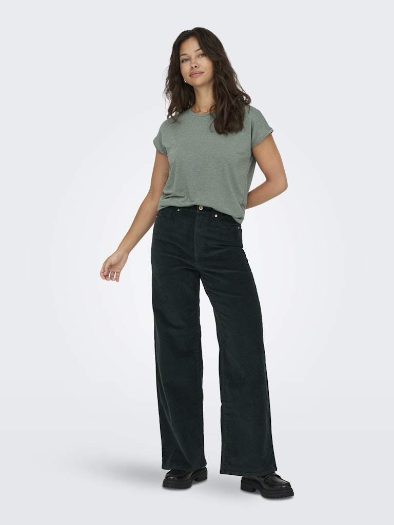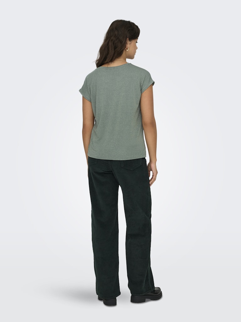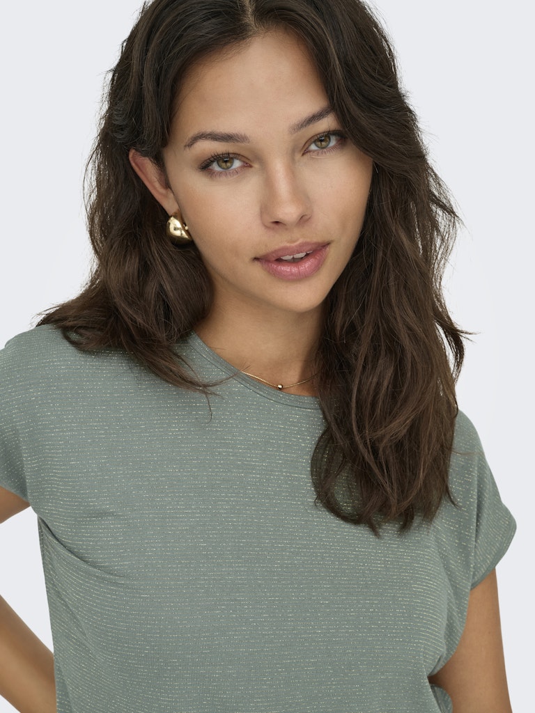 Glitter top με στρογγυλή λαιμόκοψη.Κοντό ζαπονέ μανίκι.Λεπτομέρεια lurex στην ύφανση.Ανάλαφρο ελαστικό viscose ύφασμα.Κανονική εφαρμογή.
