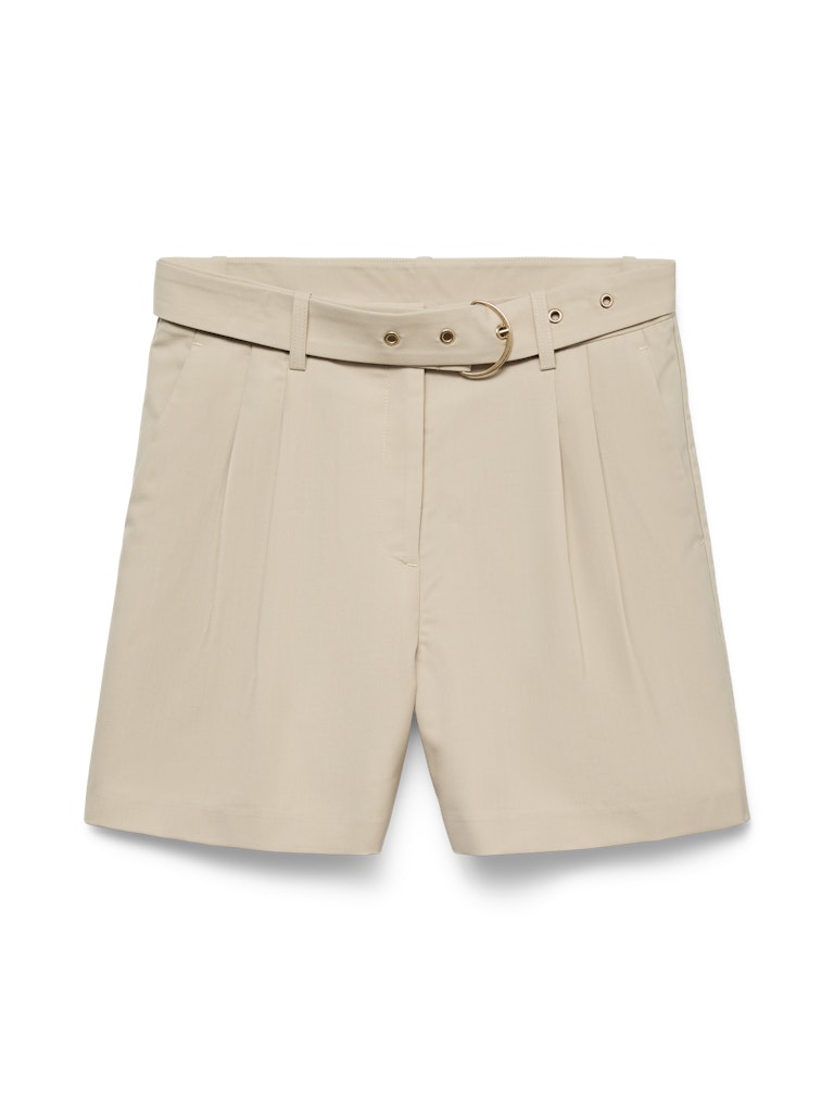 Ψηλόμεσο shorts με ζώνη στην μέση από το ίδιο ύφασμα.Πιέτες μπροστά.Πλαϊνές τσέπες.Κανονική εφαρμογή.