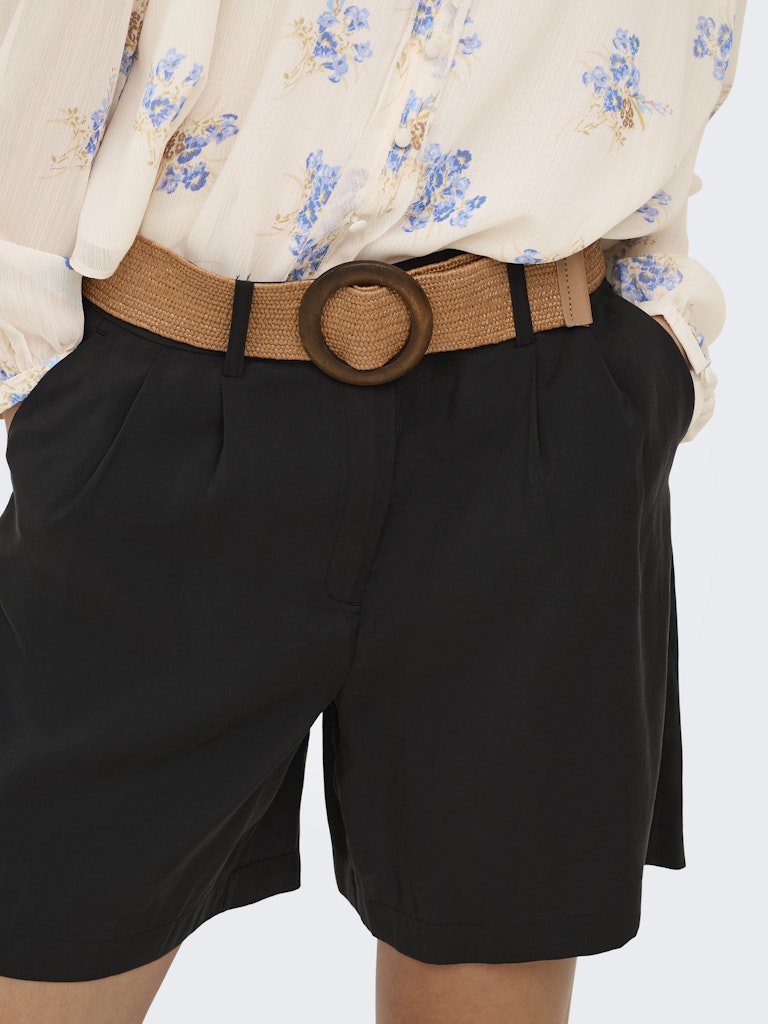 Ψηλόμεσο shorts με ζώνη στην μέση.Πιέτα μπροστά.Πλαϊνές τσέπες.Κλείσιμο μπροστά με φερμουάρ και κόπιτσα.Μήκος στην μέση του μηρού.Ανάλαφρο modal ύφασμα.Κανονική εφαρμογή.