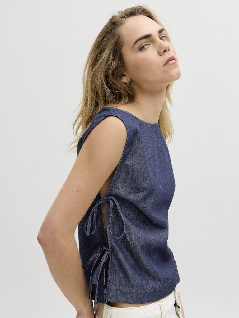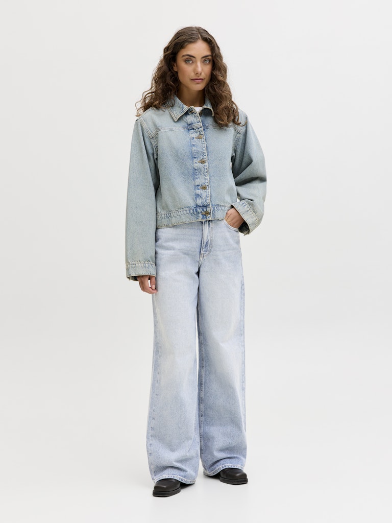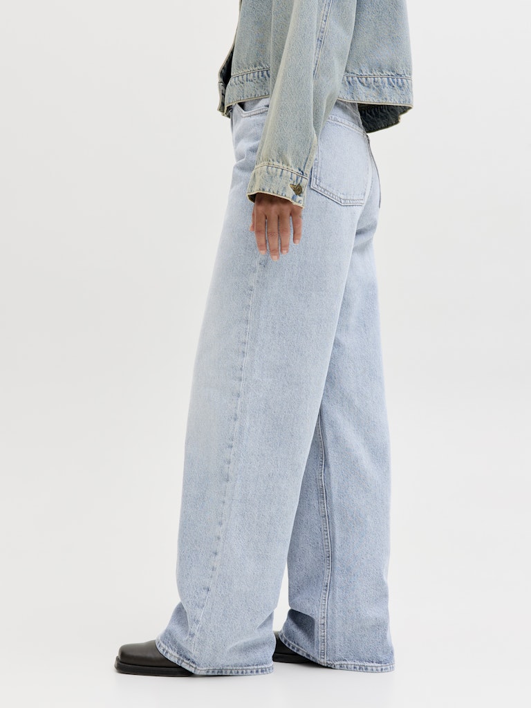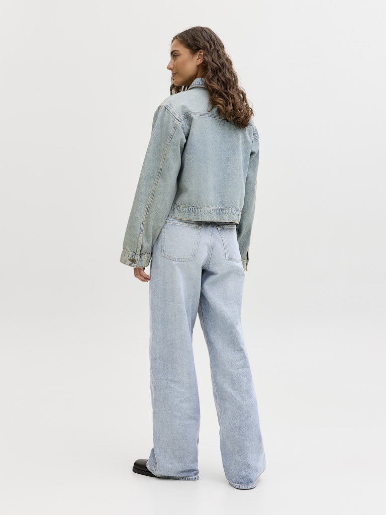 Ψηλόμεσο denim παντελόνι σε wide leg γραμμή.Πεντάτσεπο σχέδιο.Κλείσιμο μπροστά με φερμουάρ και κουμπί.Μαλακό denim ύφασμα.Κανονική εφαρμογή.