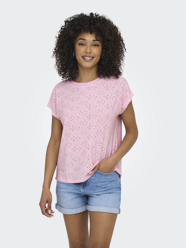 Jersey κιπούρ top με στρογγυλή λαιμόκοψη.Κοντό ζαπονέ μανίκι.Ανάλαφρο ύφασμα.Πιο μακρύ στο πίσω μέρος.Κανονική εφαρμογή.