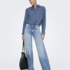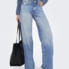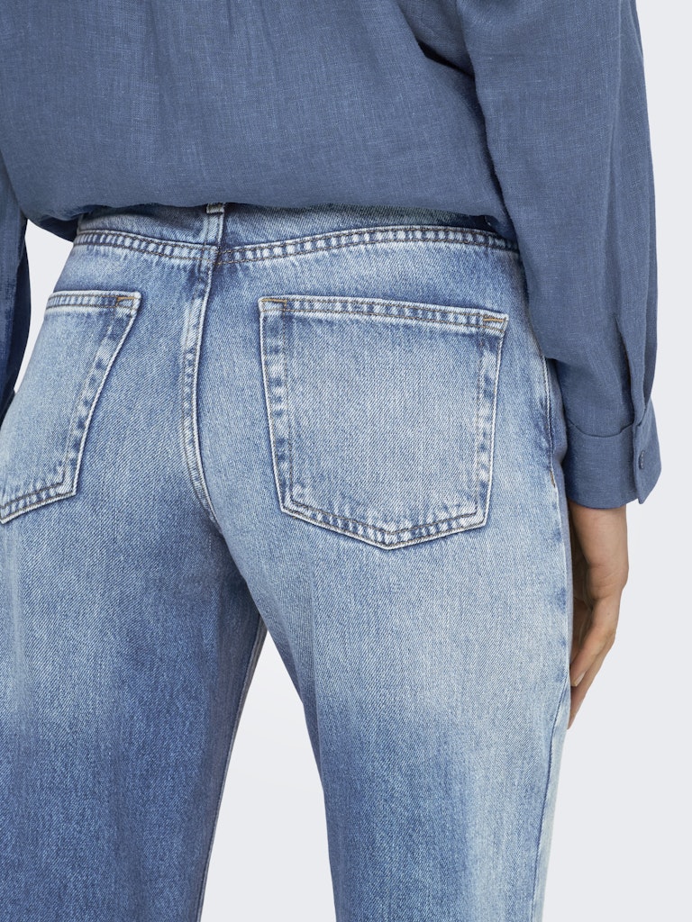 Denim παντελόνι σε wide leg γραμμή.Χαμηλή μέση.Πεντάτσεπο σχέδιο.Κλείσιμο μπροστά με φερμουάρ και κουμπί.Μαλακό denim ύφασμα.Κανονική εφαρμογή.