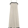 Αμάνικο μακρύ φόρεμα με ρυθμιζόμενες τιράντες.Καρέ λαιμόκοψη.Μονόχρωμο, με συρίτι σε αντίθεση στο  τελείωμα.Σχέδιο με σφηκοφωλιά πίσω στην πλάτη.Μήκος αστραγάλου.Ανάλαφρο βαμβακερό ύφασμα.Κανονική εφαρμογή.