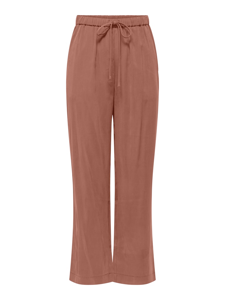 Μονόχρωμη παντελόνα με λάστιχο στην μέση και κορδόνι περίσφιξης.Σε ίσια φαρδιά γραμμή.Πλαϊνές τσέπες. Ανάλαφρο viscose ύφασμα.Καννική εφαρμογή.