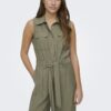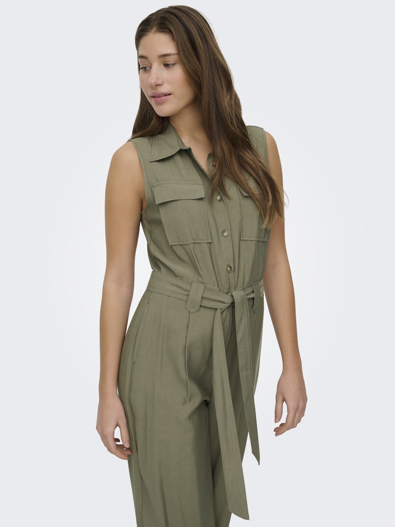 Ολόσωμη φόρμα με ζώνη στην μέση από το ίδιο ύφασμα.Κλείσιμο μπροστά με κουμπιά.Τσέπες μπροστά στο στήθος.Πλαϊνές τσέπες.Σε φαρδιά ίσια γραμμή.Ανάλαφρο viscose ύφασμα.Κανονική εφαρμογή.