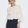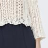 Πλεκτή μπλούζα με στρογγυλή λαιμόκοψη.Διάτρητο σχέδιο στην πλέξη.Μανίκι 3/4 καμπάνα.Cropped.Μαλακή και απαλή υφή.Κανονική εφαρμογή.