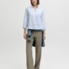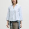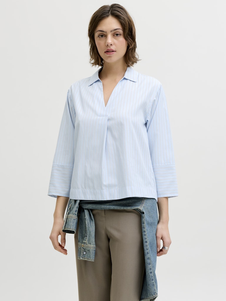 Ριγέ πουκάμισο με γιακά.Λαιμόκοψη σε σχήμα V.Φαρδύ μανίκι 7/8.Ανάλαφρο βαμβακερό ύφασμα.Κανονική εφαρμογή.