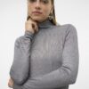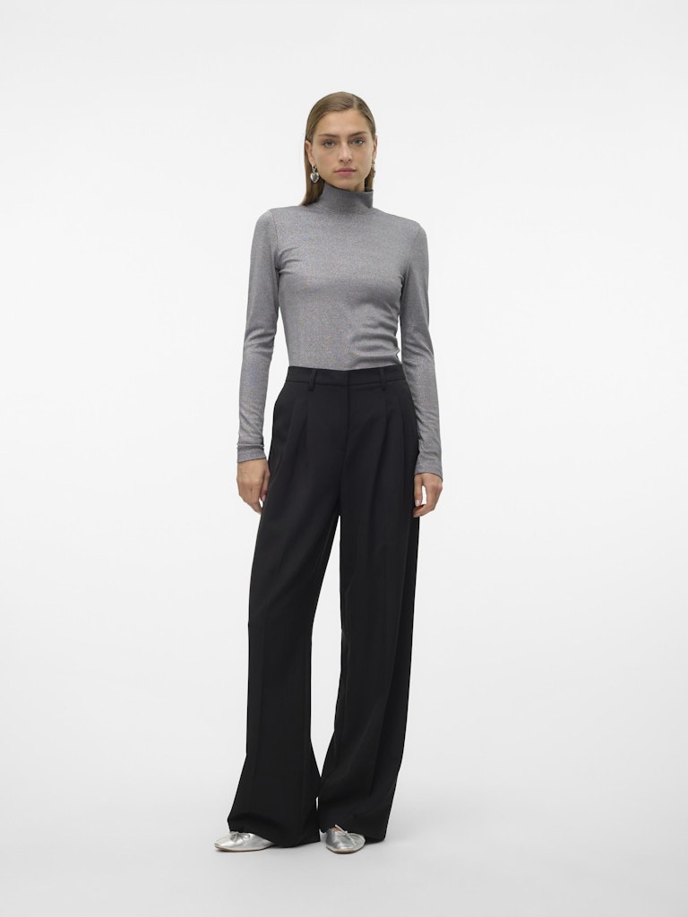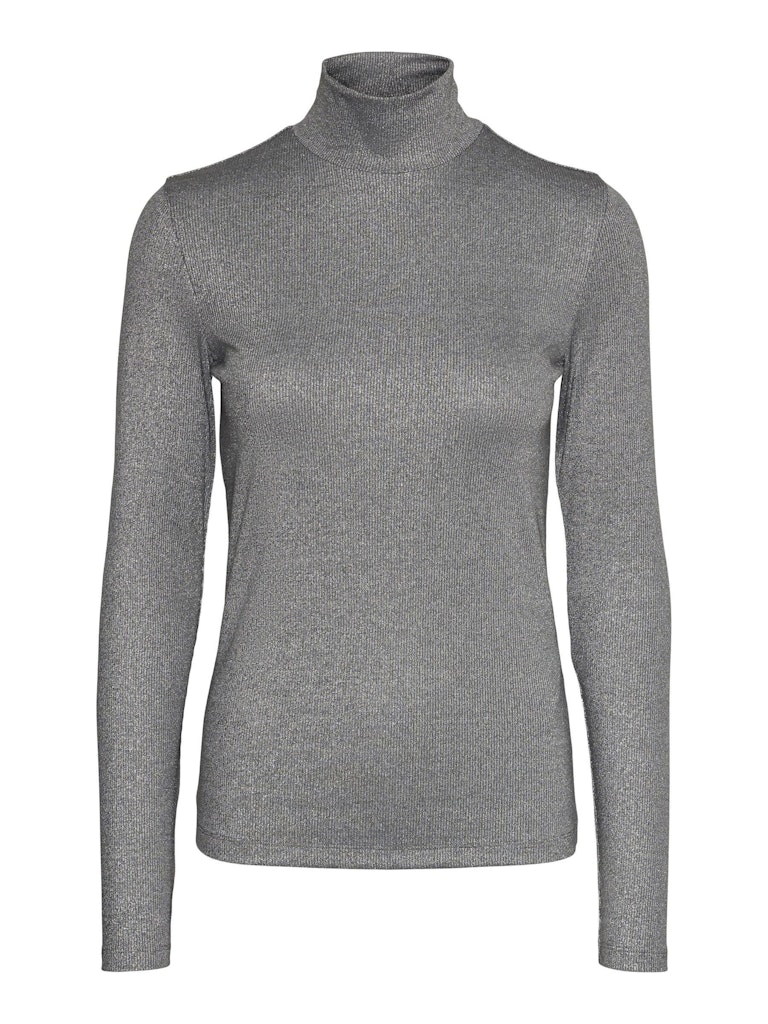 Rib lurex top με λαιμό λουπέτο.Μακρύ μανίκι.Ελαστικό ύφασμα.Εφαρμοστή γραμμή.