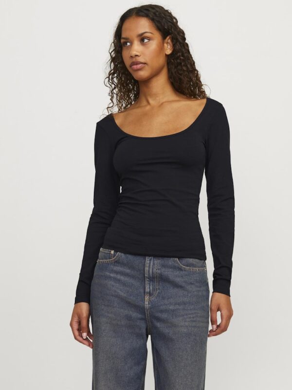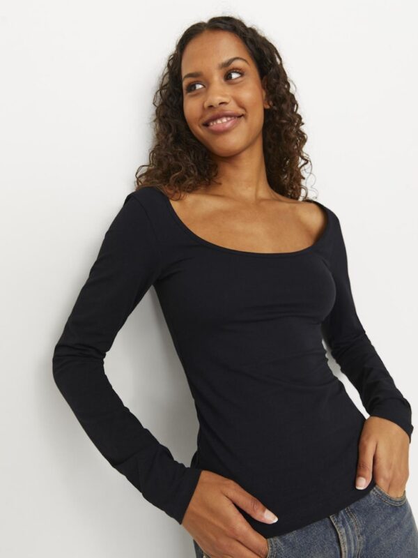 Βαμβακερό  top με λαιμόκοψη χαμόγελο.Μακρύ μανίκι.Κανονικό μήκος.Μαλακό & ελαστικό ύφασμα.Κανονική εφαρμογή.