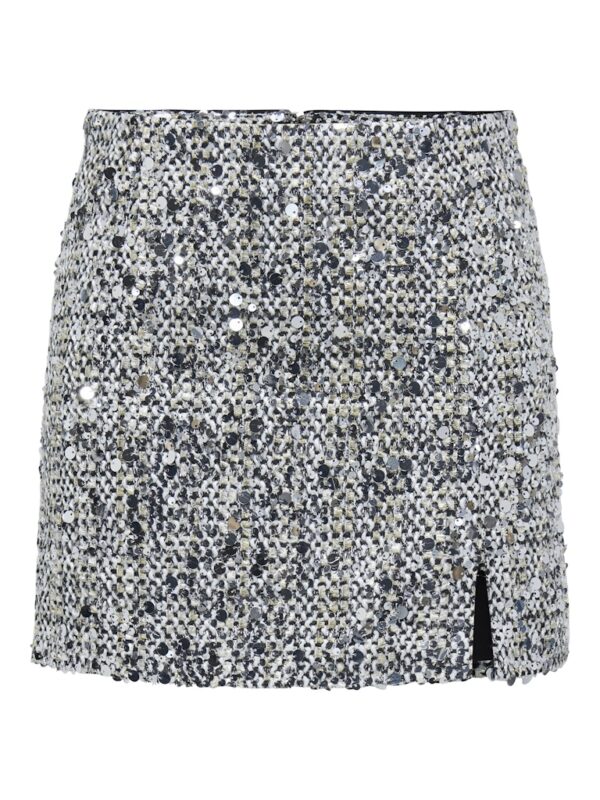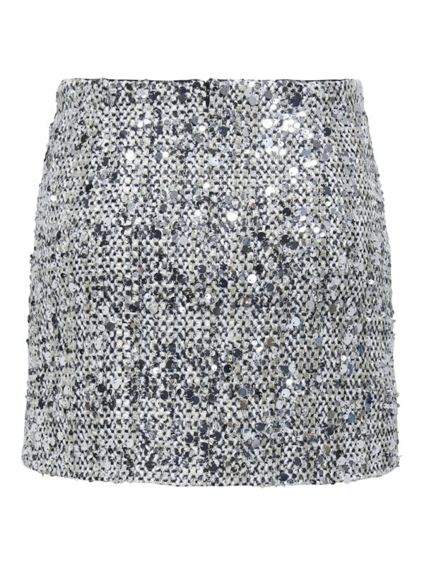 Boucle φούστα με παγιέτες.Μικρό άνοιγμα μπροστά.Μήκος πάνω από το γόνατο.Κλείσιμο πίσω με φερμουάρ.Φόδρα εσωτερικά.Κανονική εφαρμογή.