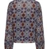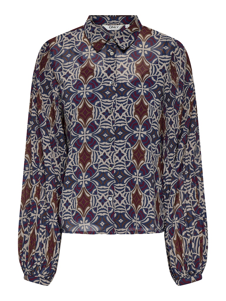 Εμπριμέ πουκάμισο με γιακά.Ανάλαφρο chiffon ύφασμα.Μακρύ plisse μανίκι διαφάνεια.Αποσπώμενο εσωτερικό top.Κλείσιμο μπροστά με κουμπιά.Κανονική εφαρμογή.
