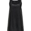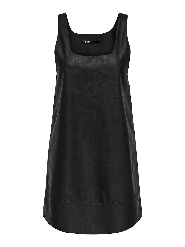 Faux leather φόρεμα με ανοιχτή λαιμόκοψη.Αμάνικο.Σε φαρδιά ίσια γραμμή.Φόδρα εσωτερικά.Μήκος πάνω από το γόνατο.Κανονική εφαρμογή.