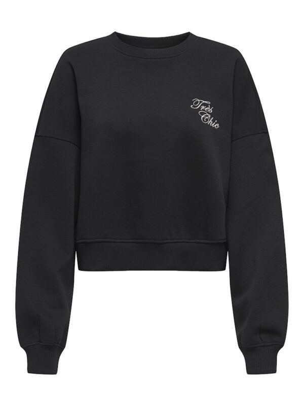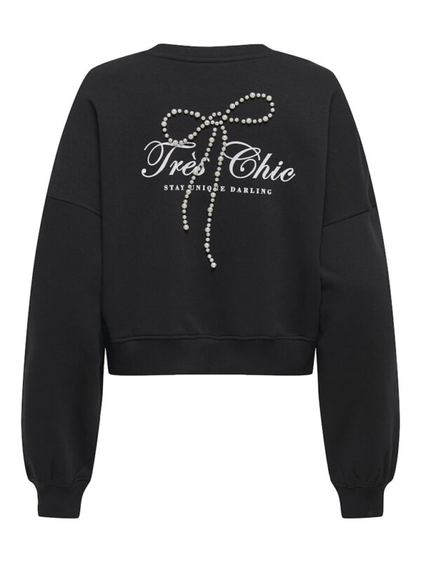 Φούτερ μπλούζα με στρογγυλή λαιμόκοψη.Στάμπα και σχέδιο με πέρλες μπροστά ή και πίσω στην πλάτη.Μακρύ μανίκι με λάστιχο στο τελείωμα.Κανονική εφαρμογή.