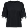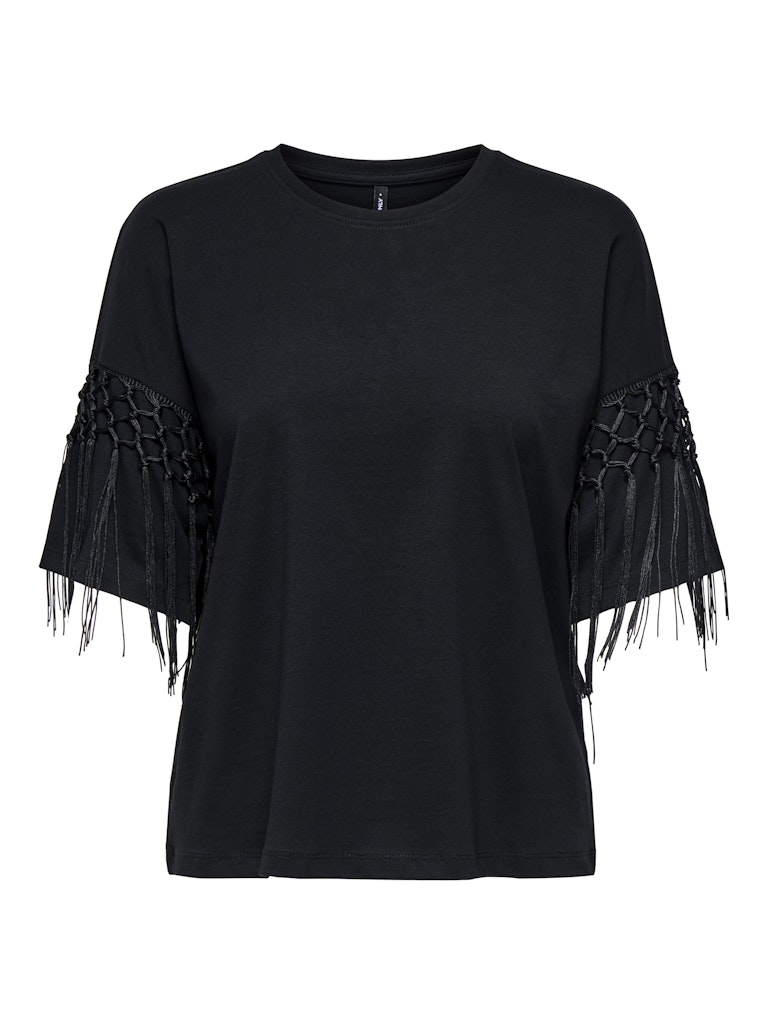 Κοντομάνικο top με στρογγυλή λαιμόκοψη.Σχέδιο με κρόσσια στο μανίκι.Μαλακό και ελαστικό βαμβακερό ύφασμα.Κανονική εφαρμογή.