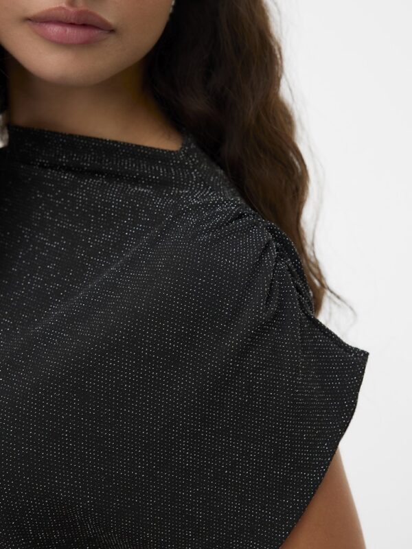 Lurex top με λαιμό λουπέτο.Ζαπονέ μανίκι με σούρες.Ελαστικό και μαλακό ύφασμα.Κανονική εφαρμογή.