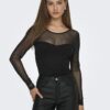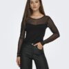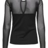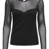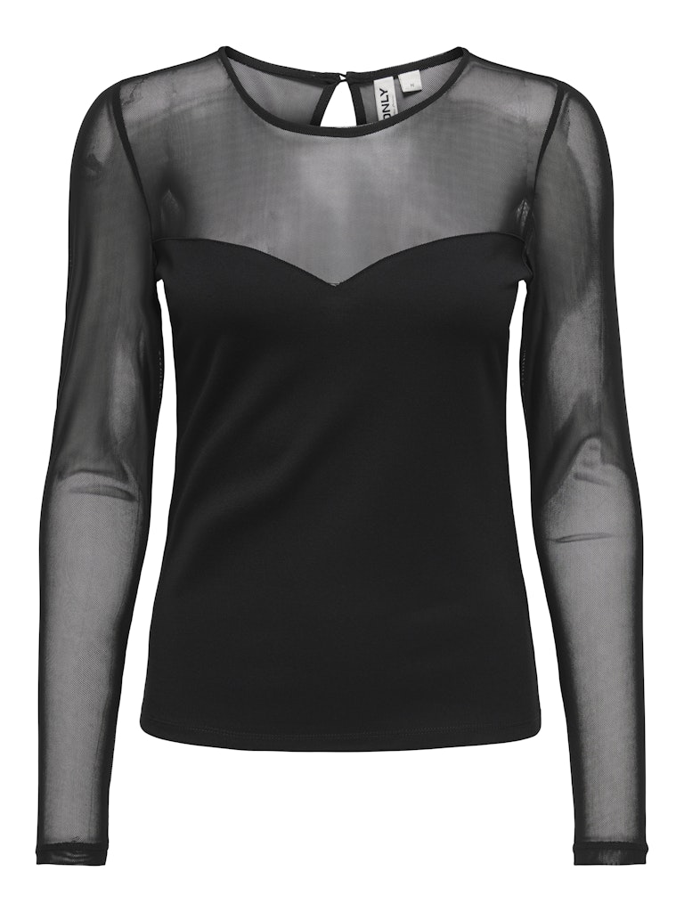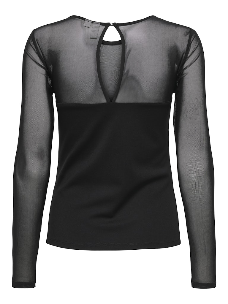 Mix top με στρογγυλή λαιμόκοψη.Μακρύ μανίκι με διαφάνεια.Ελαστικό ύφασμα.Εφαρμοστή γραμμή.