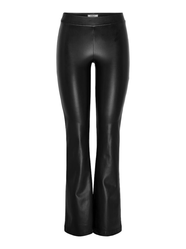 Κολάν δερματίνη με καμπάνα στο τελείωμα.Κανονικό ύψος μέσης.Επένδυση εσωτερικά.Μαλακό και ελαστικό ύφασμα.Κανονική εφαρμογή.