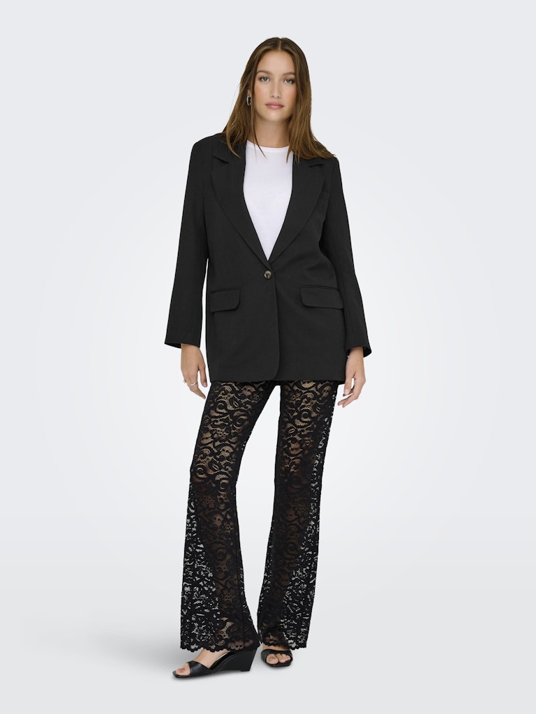 Oversize σακάκι με γιακά.Μακρύ μανίκι.Τσέπες μπροστά με καπάκι.Φόδρα εσωτερικά.Κλείσιμο μπροστά με κουμπί.Κανονική εφαρμογή.