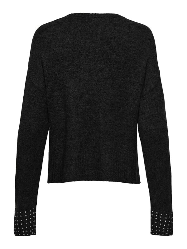 Πλεκτή μπλούζα με στρογγυλή λαιμόκοψη.Μακρύ μανίκι με στρας στο τελείωμα.Μαλακή και απαλή υφή.Κανονική εφαρμογή.