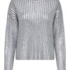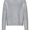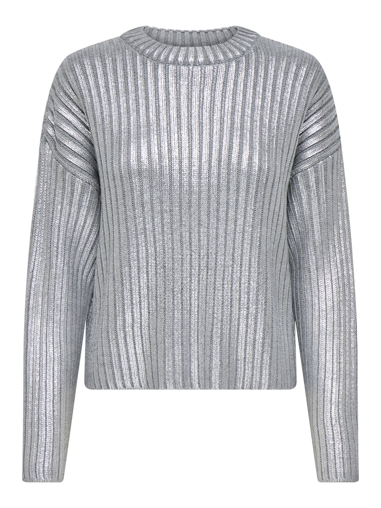 Πλεκτή rib foil μπλούζα με στρογγυλή λαιμόκοψη.Μακρύ στενό μανίκι.Ριχτοί ώμοι.Κανονική εφαρμογή.