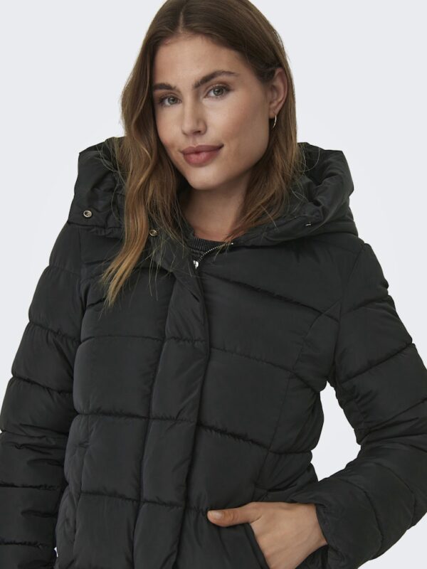 Puffer μπουφάν  με κουκούλα.Μακρύ μανίκι.Πλαϊνές τσέπες.Κλείσιμο μπροστά με φερμουάρ και κουμπιά.Αντιανεμικό.Φόδρα εσωτερικά.Κανονική εφαρμογή.