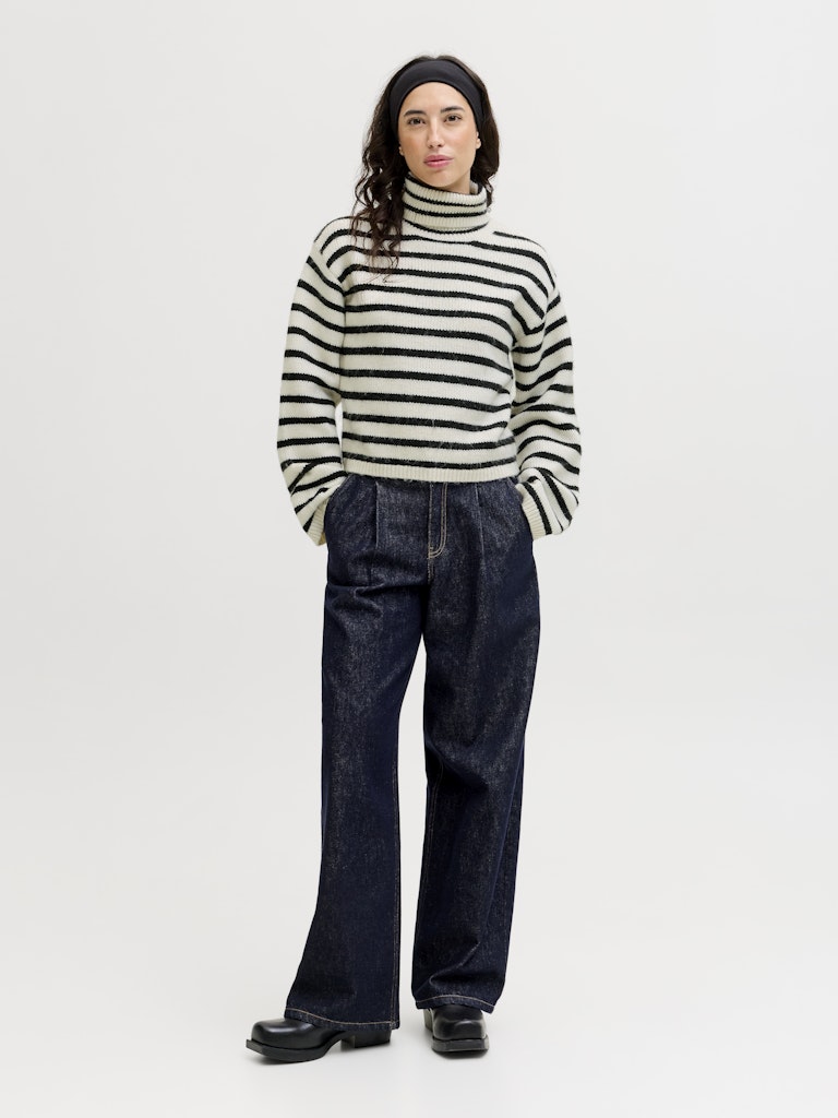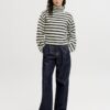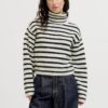Ριγέ πλεκτή μπλούζα με λαιμό ζιβάγκο.Μακρύ μανίκι.Μαλακή και απαλή υφή.Κανονική εφαρμογή.