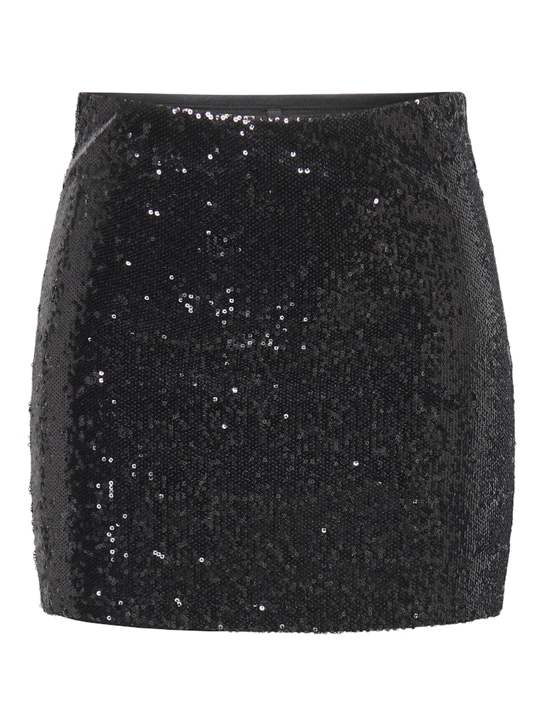 Κοντή φούστα με λάστιχο στην μέση.Φόδρα εσωτερικά.Ελαστικό ύφασμα με παγιέτες.Μήκος πάνω από το γόνατο.Εφαρμοστή γραμμή.