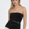 Velvet strapless top με ζώνη στην μέση.Κλείσιμο στο πλάι με φερμουάρ.Φόδρα εσωτερικά.Μαλακό και ελαστικό ύφασμα.Εφαρμοστή γραμμή.